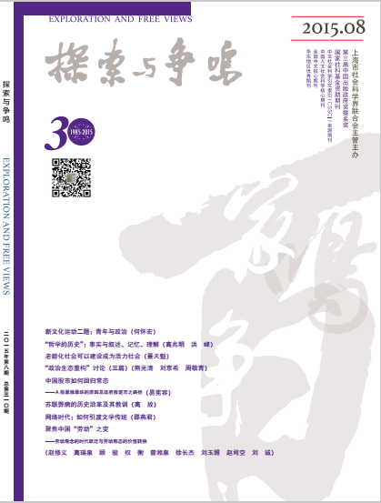 “劳动”是一个与每个人每一天的生活息息相关的关键词,然则,自 20 世纪起,“劳动”观念才真正获 得了现代意义的跃迁。新中国成立以来,“劳动光荣”的风尚一度领社会之风骚,尽管其间也悖谬重重;改 革开放 30 多年之后,当社会主义市场经济与全球化、信息化、工业化、城市化等要素全面结合,当尚未完 结的中国工业革命又卷入新的科技革命浪潮,当社会深度转型与多项深化改革举步维艰,马克思主义经典意 义上劳动与非劳动的界限被模糊,“五一”劳动节被诸多艰辛奋斗的蚁族所忽略,劳动模范被赋予“你懂的” 别样的意味,劳动价格被置于市场的天平下反复称量,劳动政策常常游离于法制化进程中的劳动纠纷之外, 劳动关系正在经受利益关系微妙的变化和价值冲突严峻的考验……今日劳动问题之复杂,仅仅靠道德化地宣 扬“劳动光荣”抑或批判“不劳而获”,易于陷入话语的“空转”;在食利者阶层出现、互联网 + 时代大众创 业新社会经济形态下,越来越多的人意识到“劳动”不仅是一个经济问题,而且是一个涉及公正、自由的价 值问题,甚至关涉到能否坚持社会主义方向。日前,《探索与争鸣》编辑部与上海市社科理论创新基地(华 师大)联合举办了“劳动、劳动观念和社会公正”的专题研讨会,特邀相关领域的专家学者共同聚焦中国“劳 动”之革新与挑战,探索劳动观念时代跃迁的形成机理,寻找劳动形态价值转换的应对方略。本期编发部分 研讨成果,期盼更多的读者接续推进这一话题的解答。